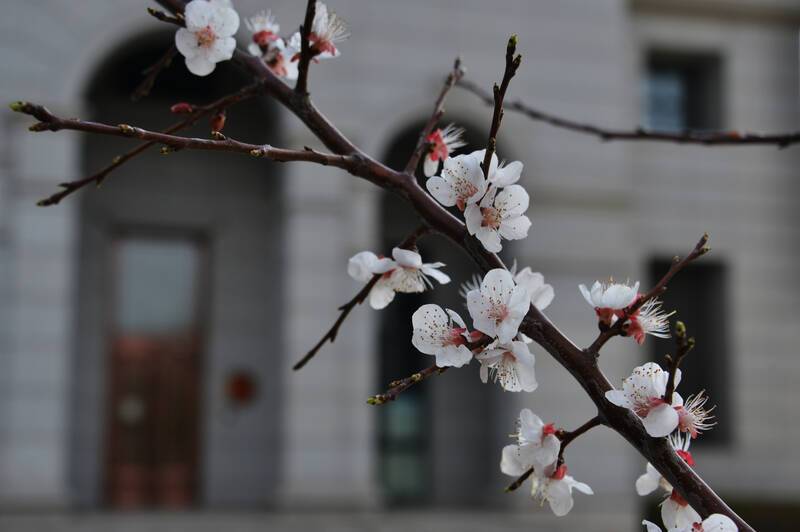桃花初绽,连翘盛放