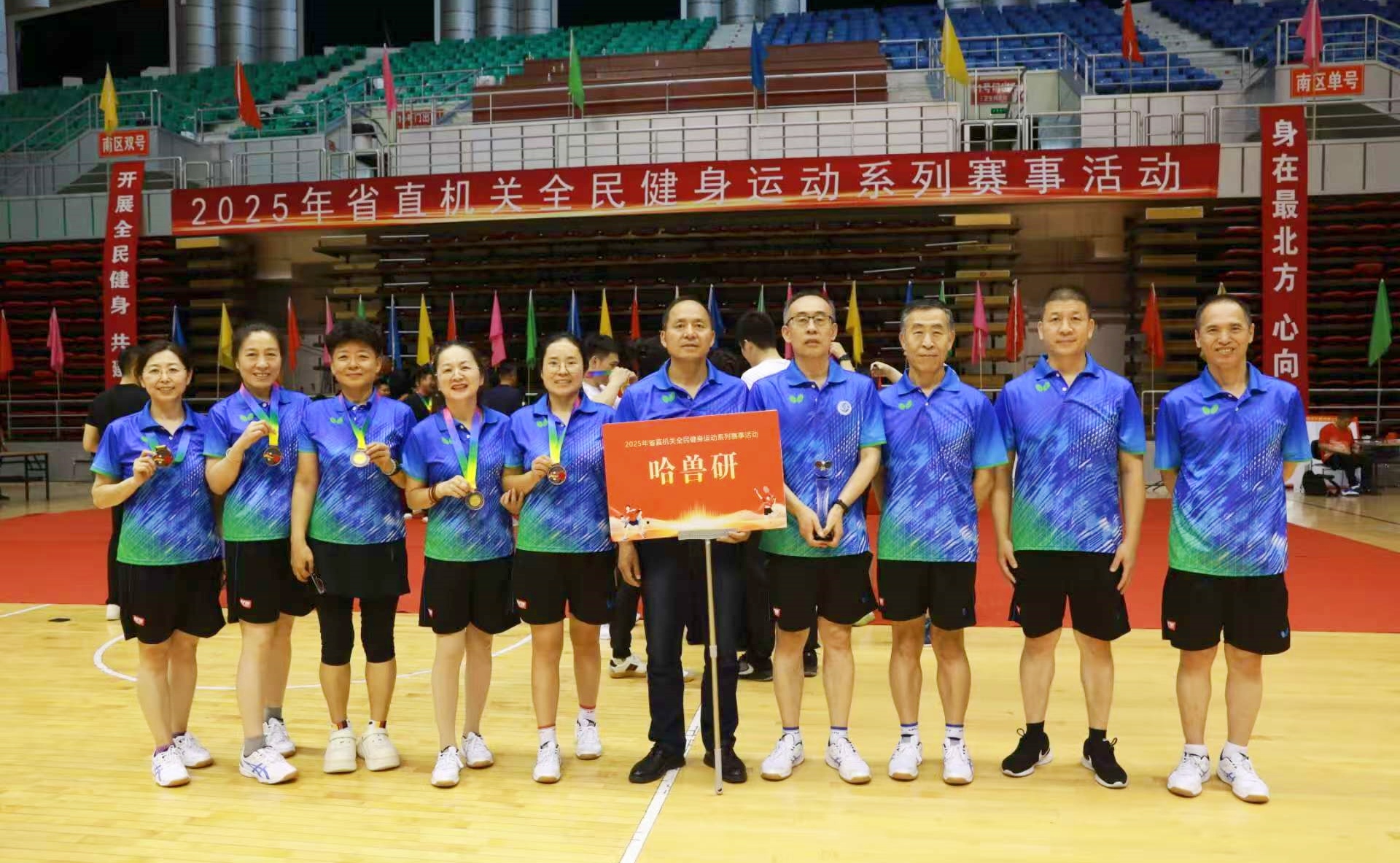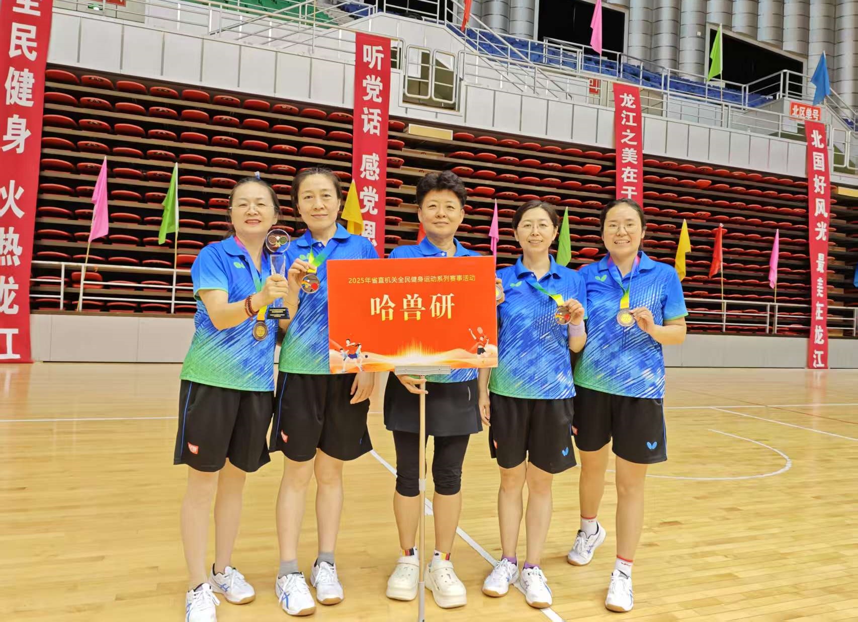 6月21~22日、27~29日,2025年黑龙江省省直机关全民健身运动系列赛事活动乒乓球比赛在东北林业大学体育馆隆重举行。中国农业科学院哈尔滨兽医研究所派出代表队参加了男、女团体,中年男、女单打,青年女子单打,男、女双打和混合双打等八个项目的比赛。代表队以出色的球技与昂扬的风貌,勇夺多项荣誉:女子团体荣获季军、李雁冰荣获中年女子单打亚军、李娜/史丽欣和李雁冰/符芳并列女子双打季军、刘益民/李雁冰荣获混双季军,全体参赛运动员们用拼搏与汗水奏响了一曲精彩的赛场乐章。