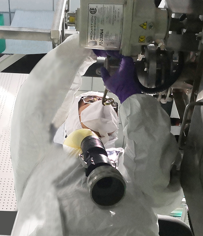 在科技攻关任务期间,吕士昆同志经常在-500Pa的密封实验室工作数个小时,只为找到一个小米粒大小的漏点。他进入高不足1米、面积不足3平方米的动物隔离器内部的狭小空间检测气密性。实验期间样本传输时间紧迫刻不容缓。一天夜里11点,吕士昆接到紧急通知,用于传输样本的渡槽在紧要关头出现故障。他立即进入实验室进行紧急维修,直至凌晨1点排除了故障,样本传输完成。虽然紧张疲惫,但心中的责任感和使命感在他脸上绽放得绚烂而夺目。他是积极向党组织靠拢的先进分子,他用使命与奋斗淬炼火红初心,他以实际行动践行着初心。
