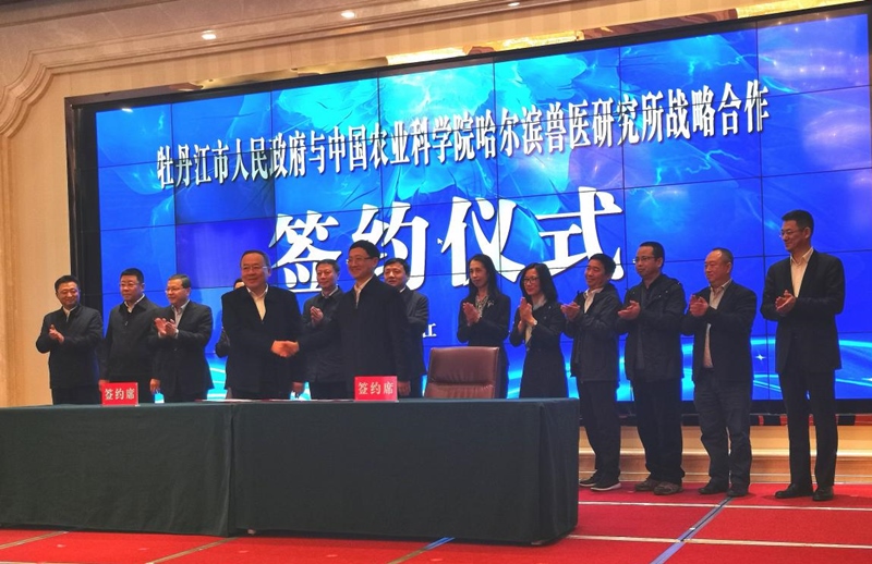 牡丹江市委书记杨廷双向我所对牡丹江经济社会发展长期以来的关心关注、支持帮助表示感谢。他表示,哈兽研作为“国家队”,拥有丰富的人才资源和科技成果,拥有诸多高端科研平台,近年来在“禽流感”研究和防控、“非典”防治科技攻关、非洲猪瘟疫苗研制攻关等方面取得了可喜的成绩,多项科研成果获得国家级奖励。目前,牡丹江政通人和、人心思进,广大干部精神振奋、信心倍增、干劲十足,正在举全市之力筹备全省第四届旅发大会,中省直部门、省“七大集团”全力支持牡丹江。希望哈兽研充分发挥人才优势、科研优势,加快与牡丹江共同推动签约项目落实落地,帮助牡丹江吸引更多人才创新创业,促进更多科技成果转化落地,助推畜牧、生物医药等优势产业快速发展。