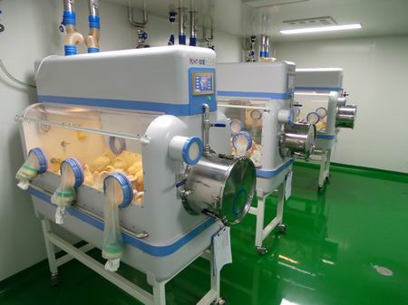 实验区隔离环境由屏障环境下的隔离器和独立通风系统(IVC)组成。目前共有隔离器201台:禽隔离器159台、啮齿类及豚鼠18台、兔12台、仔猪12台;正压IVC系统17套,用于啮齿类、兔、豚鼠非感染性实验,不同品系、不同等级的实验动物分区饲养。