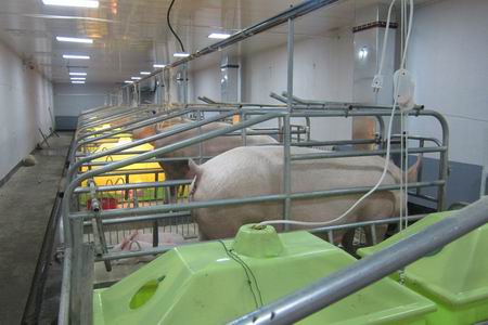 负压屏障环境参数:空气洁净度7级;相临区域最小静压差≥10Pa;全新风通风;换气次数≥15次/小时,大型动物换气次数≥20次/小时。负压屏障环境共设45间独立的实验单元(约30m2/间),内置中型动物实验用低栏床(栏距床面0.9米)、大动物实验用高栏床(栏距床面1.7米)、小型动物实验用笼架、隔离器(初生仔猪)、产床(母猪产房和母仔间)。