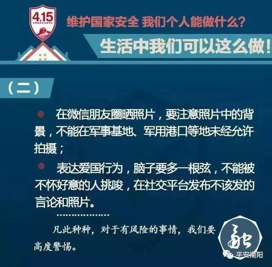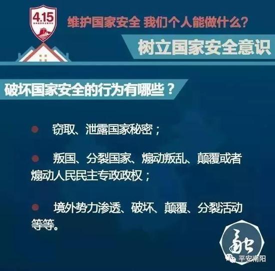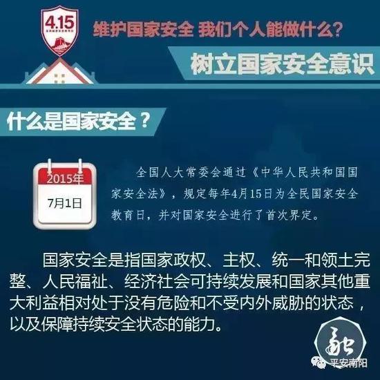 4月15日,是我国全民国家安全教育日。提到国家安全,很多人会联想间谍、特工、战争等,觉得离自己太遥远。实际上,“国家安全”早已不限于“保卫国家不受侵略”的意思,而拓展到了经济、社会、生态环境、网络空间等各个领域,它其实与我们每个人的生活都息息相关。那么,作为我们个人来说,究竟该如何维护国家安全?赶快浏览下图,快速get这项新技能吧!