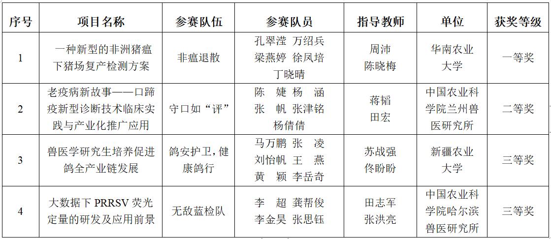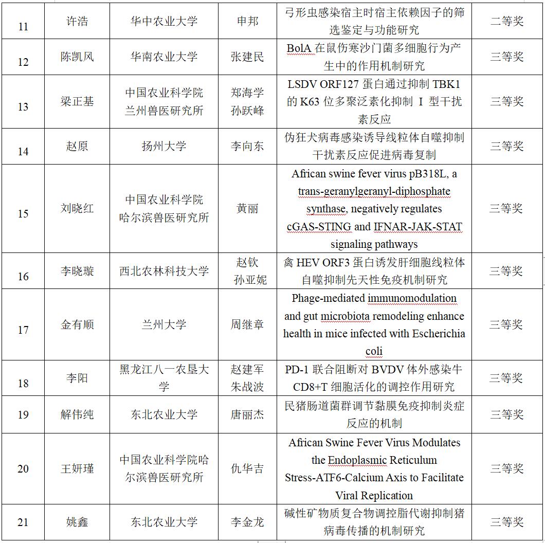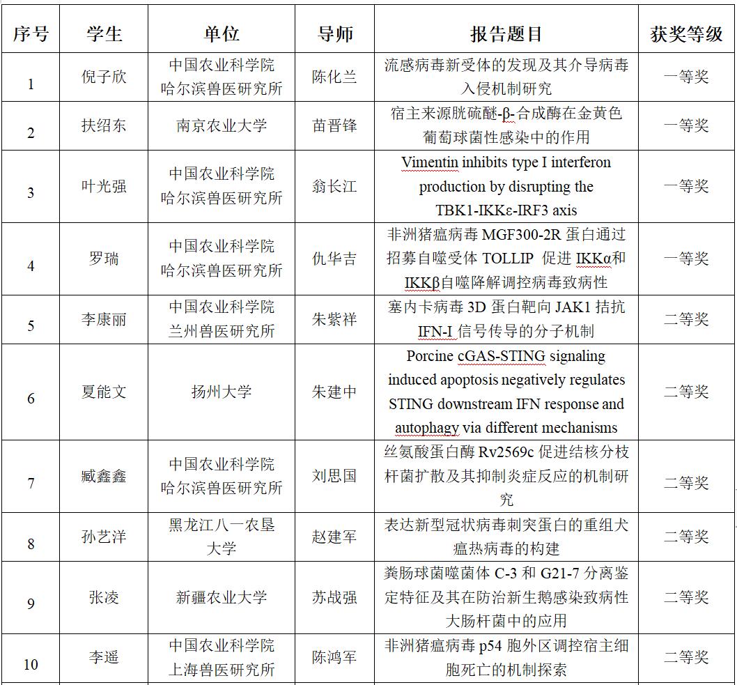 第二届兽医学博士峰会学术报告获奖名单