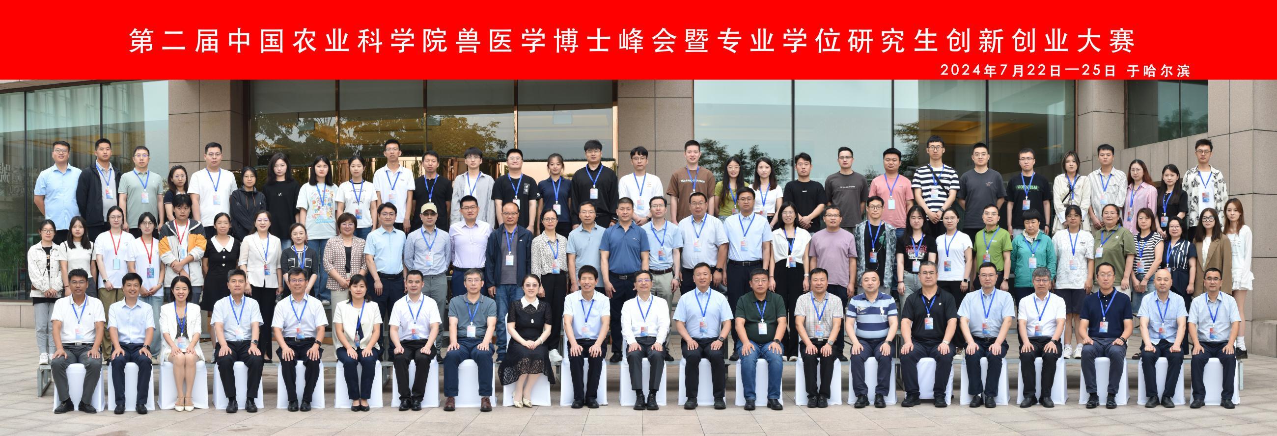 7月23-24日,第二届中国农业科学院兽医学博士峰会暨专业学位研究生创新创业大赛在哈尔滨顺利举办。此次峰会由中国农业科学院研究生院兽医学院、动物疫病防控全国重点实验室主办,山东信得科技股份有限公司承办,湖南冠牧生物科技有限公司、哈尔滨维科生物技术有限公司、哈尔滨国生生物科技股份有限公司共同协办。中国农科院学科建设处处长杨建玲,中国农科院哈尔滨兽医研究所所长步志高、副所长李呈军,黑龙江八一农垦大学副校长孙东波,哈尔滨国生生物科技股份有限公司董事长王云峰、副总经理王牟平,哈尔滨维科生物技术有限公司总裁曾显营、总经理孙元,湖南冠牧生物科技有限公司董事长杨忠苹、总经理赵和平,山东信得科技股份有限公司研发总监宋庆庆,中国农业大学动医学院副院长张国中、韩军,四川农业大学动医学院院长陈舜,新疆农业大学动医学院院长郭庆勇,东北农业大学动医学院院长李金龙,沈阳农业大学动医学院院长杨建成,华中农业大学动科动医学院副院长彭贵青,吉林大学动医学院副院长贺文琦、王化磊,以及中国农科院哈尔滨兽医所、兰州兽医所、上海兽医所、特产所、北京牧医所、兰州牧药所等12所院校的近150名师生参会。兽医学院常务副院长刘益民主持开幕式。