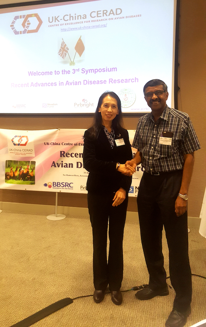 应英国Pirbright研究所禽病研究中心主任Venugopal Nair教授、《Avian Pathology》(禽病理)杂志主编Janet Bradbury教授和世界禽病协会(The World Veterinary Poultry Association (WVPA))的邀请,2017年8月30—9月6日,中国农业科学院哈尔滨兽医研究所王笑梅研究员、高玉龙研究员出席了第三届中英禽病研究国际研讨会、《Avian Pathology》杂志顾问委员会会议和第二十届世界禽病大会(XXth WVPA Congress)。