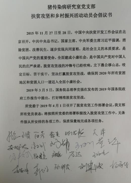 脱贫攻坚,我们在行动 —— 猪传染病研究室党支部召开积极投身脱贫攻坚和乡村振兴工作动员会