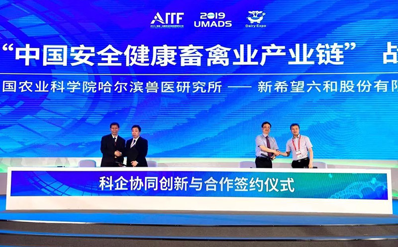 大会通过一系列的成果展示和转化活动,对塑造中国农业科技成果转化模式进行了有益的探索。会上,发布了100项重大农业科技成果和1000项优秀科技成果,其中,我所研制的猪圆环病毒2型灭活疫苗(LG株)技术推广与应用、猪瘟亚单位疫苗(mE2)、马流感灭活疫苗(H3N8亚型,XJ株)和牛副流感病毒3型灭活疫苗(SD0835株)等4项科研成果被推选列入百项重大农业科技成果。在此期间,相关科研机构和农业企业进行了重大科技成果转化签约,我所和新希望六和股份有限公司签订了《中国安全健康畜禽业产业链战略合作协议》,将全面开展畜禽疫苗与疫病防控等方面的科企合作。