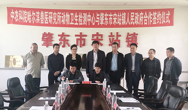 为助力乡村振兴,推进畜牧大镇肇东市宋站镇的发展,5月30日,我所动物卫生检测中心与肇东市宋站镇人民政府举行合作签约仪式。党委副书记夏长友、党委委员兼党办主任张晓鹏、动物病原监测与流行病学研究创新团队首席科学家蔡雪辉、牛羊传染病研究创新团队副研究员常继涛,肇东市委副书记吕鑫、宋站镇党委书记杜丙权、副镇长杨玉林,肇东市畜牧局疫控中心主任张智刚出席签约仪式,动物卫生检测中心主任孙建宏与宋站镇镇长吕艳坤分别在合作协议书上签字。