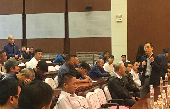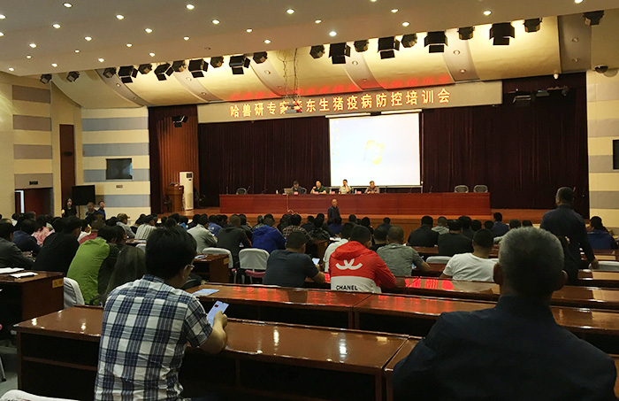 培训会上,我所猪病专家田志军研究员和孙元副研究员分别就蓝耳病和非洲猪瘟的流行现状和防控难点以及猪场生物安全进行了讲解。随后,仇华吉研究员组织专家对现场提出的各种问题进行了详细、全面的解答。专家们精彩的讲解和耐心细致的解答赢得了大家热烈的掌声。