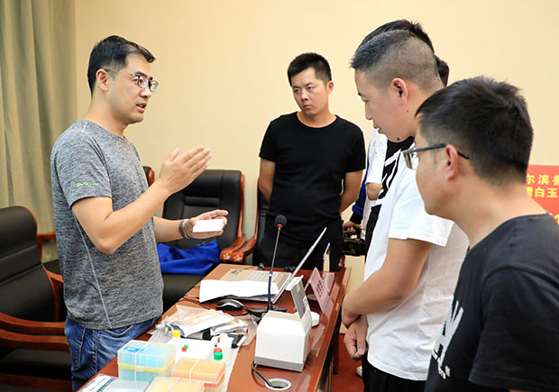捐赠仪式后,举行了第二次动物疫病防控实用技术培训会。德格县、白玉县60余名工作在第一线的动物疫病防控人员参加了本次培训。刘永刚副研究员做了“血清学检测在兽医临床中的应用”的讲座,于申业副研究员做了“牛副结核病的防控及检测实操”的讲座。两位老师的讲座以基层实际需求为出发点,深入浅出地讲解了血清学检测对动物疫病防控的重要作用,列举了常用的血清学检测方法。为了让参加培训的同志更直观地了解ELISA方法,还特地做了演示视频。参加培训的同志们纷纷表示这次培训非常及时,而且非常生动,对基层工作非常有帮助,希望培训能够经常举办。
