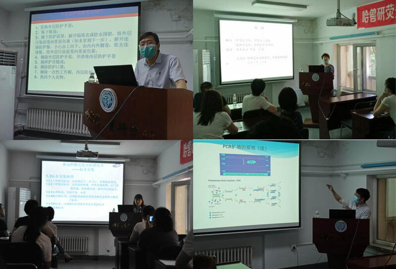 6月10-12日,第一期“哈兽研荧光定量PCR检测技术实用培训班”举行。动物卫生检测中心孙建宏主任主持开班式,所党委副书记夏长友参加开班式并致辞,来自5所医院及1所医学检验室的共10位学员参加了此次培训。培训内容系统而丰富,均由业内经验丰富的专家授课。高等级动物疫病防控实验室(P4实验室)关云涛副主任为此次培训拉开了帷幕,重点讲解了“生物安全二级实验室管理与三级防护”;孙建宏主任、省卫生健康管理服务评价中心吴皓瑜主任、市疾控中心病毒检测科任丽娜副主任及研究所刘恒贵老师分别就PCR实验室设计与管理,如何防止和消除气溶胶污染,荧光定量PCR检测中的常见问题,荧光定量PCR原理及技术,荧光定量PCR的样品采集、运输、接收、样品制备、扩增、数据解读、报告出具等内容进行了授课和答疑。每天都安排实践教学和检测实验课。