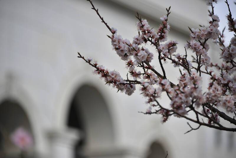 桃花初绽,连翘盛放
