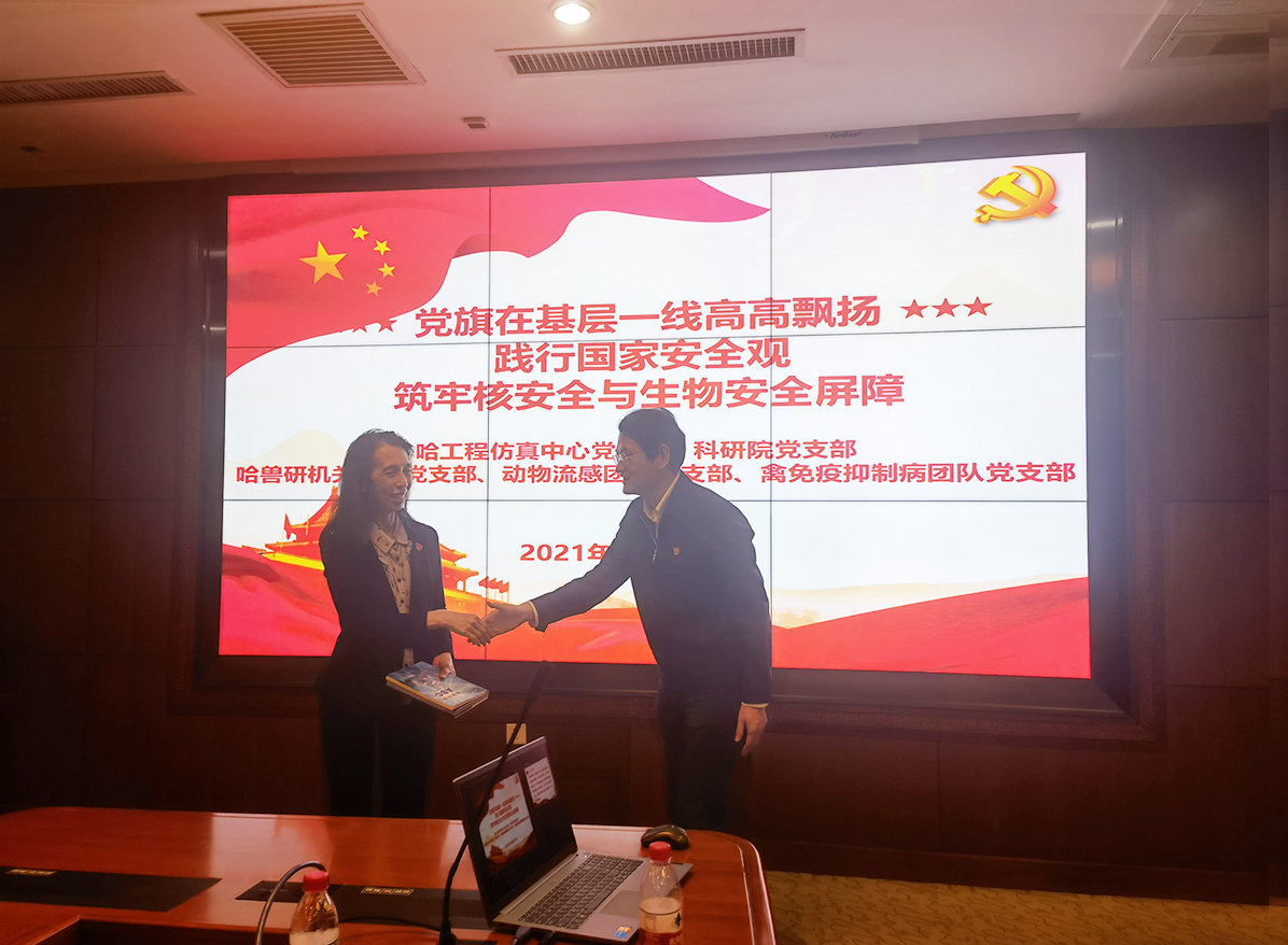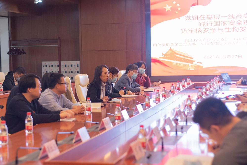 为丰富党史学习教育内容,进一步深入践行总体国家安全观,10月27日下午,我所机关第二党支部、动物流感团队党支部、禽免疫抑制病团队党支部与哈尔滨工程大学核学院仿真中心党支部、科研院党支部开展 “党旗在基层一线高高飘扬,践行总体国家安全观,筑牢核安全与生物安全屏障”为主题的支部共建活动。党委书记王笑梅参加活动。