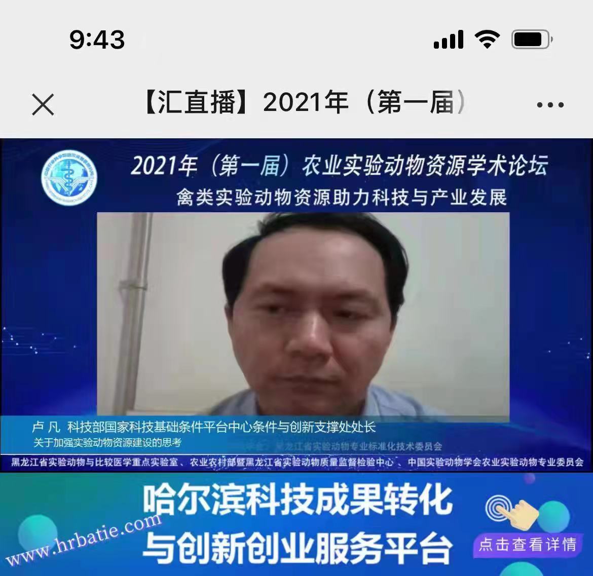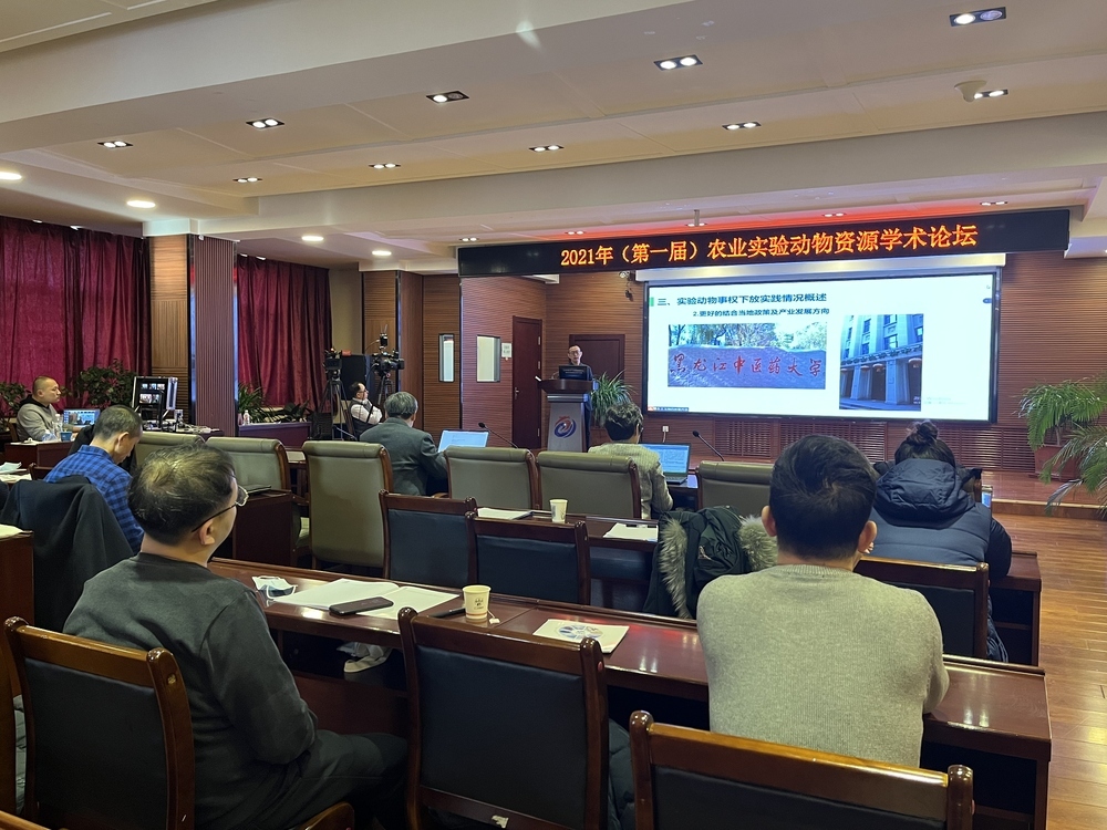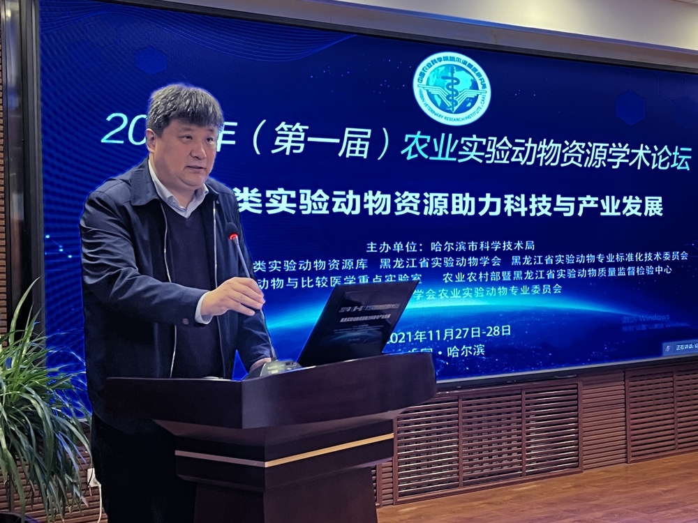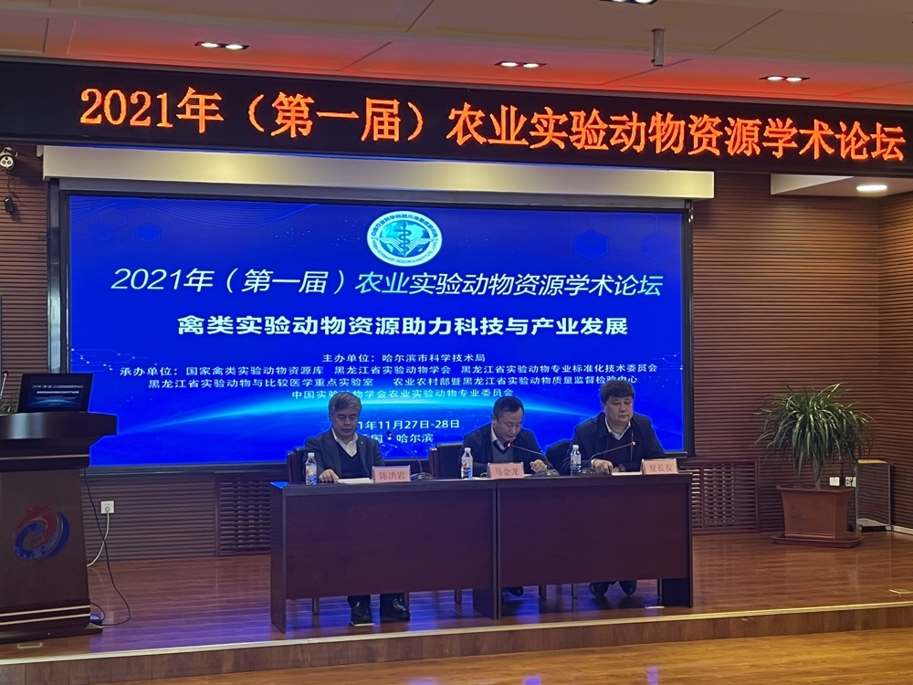 11月27-28日,2021年(第一届)农业实验动物资源学术论坛在黑龙江省哈尔滨市召开。此次学术论坛由哈尔滨市科学技术局主办,国家禽类实验动物资源库、黑龙江省实验动物学会、黑龙江省实验动物专业标准化技术委员会、黑龙江省实验动物与比较医学重点实验室、农业农村部暨黑龙江省实验动物质量监督检验中心、中国实验动物学会农业实验动物专业委员会承办。论坛主题是“禽类实验动物资源助力科技与产业发展”。本次论坛采用线上与线下结合的方式举行,国内实验动物专家、相关研究人员、禽类实验动物管理人员及相关从业人员参加了此次论坛。中国农业科学院哈尔滨兽医研究所党委副书记夏长友研究员主持开幕式,哈尔滨市科学技术局农社处马金龙处长、科学技术部国家科技基础条件平台中心条件与创新支撑处卢凡处长 、中国农业科学院科学技术局平台处刘建安处长分别致辞,向与会专家表示热烈祝贺!
