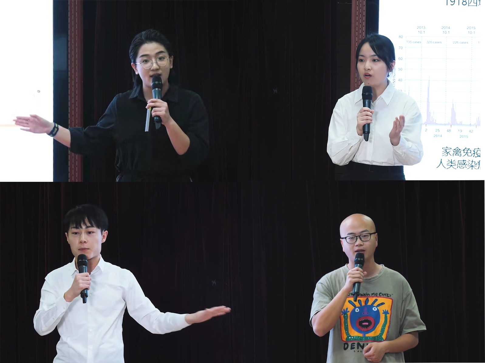 经研究所初赛,我所动物流感基础与防控研究创新团队的王一晗、于晴晴、王逸凡,以及猪消化道传染病创新团队的朱晓远等4位同学入围决赛。他们分别以《流感与达菲》《与幽灵共舞》《Membrane Fusion》和《猪流行性腹泻冠状病毒的自述》为题,用幽默诙谐的语言揭示枯燥的理论知识,用深入浅出的表达阐明复杂的学术问题。最终,经过专家评委打分与大众评审投票,朱晓远荣获决赛二等奖,王一晗和于晴晴荣获决赛三等奖,王逸凡荣获决赛优秀奖。