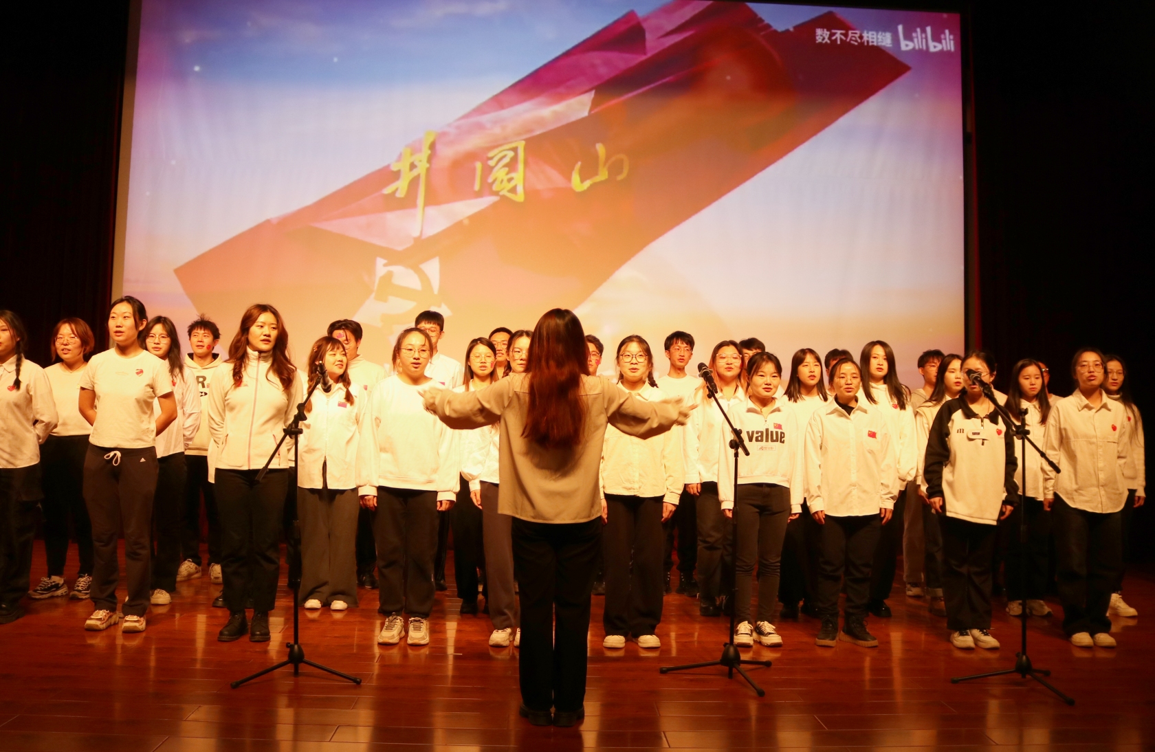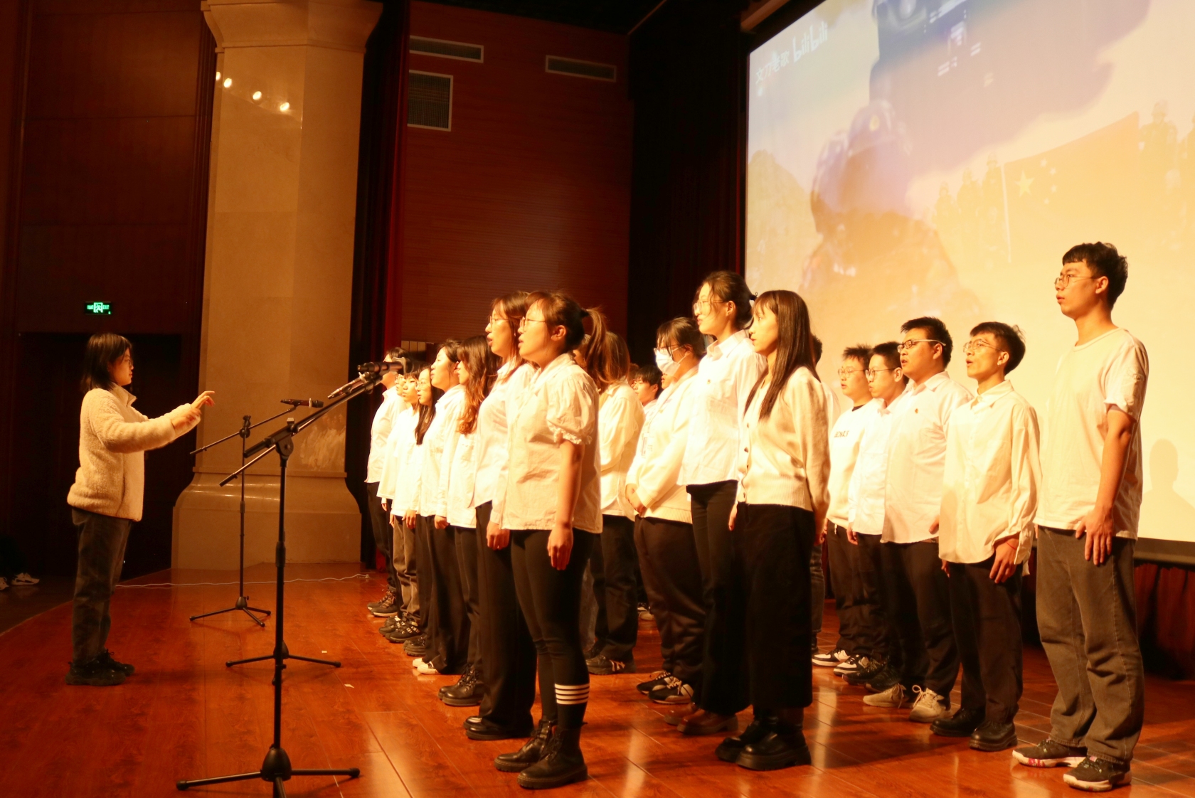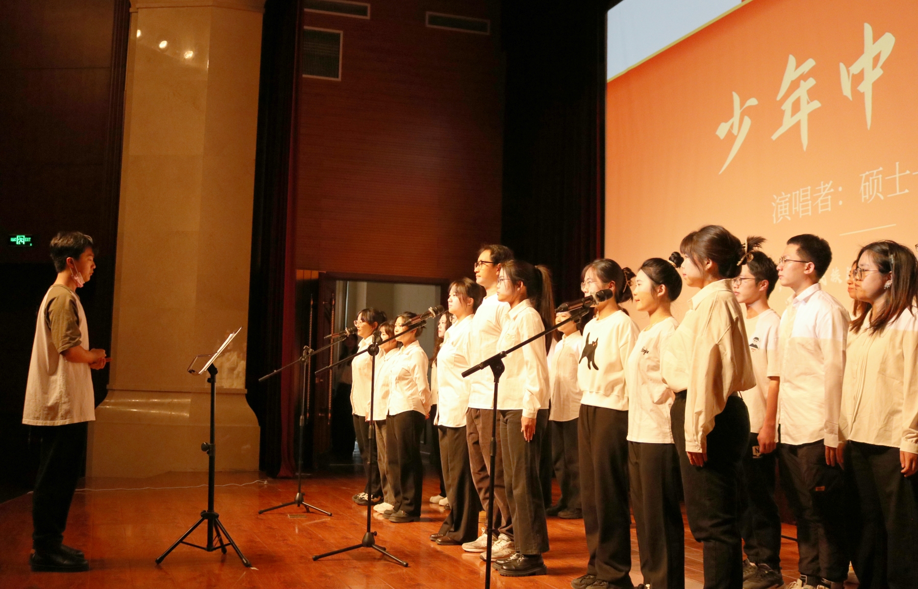 本次活动在“一二·九”学生爱国救亡运动纪录短片中拉开序幕。当铿锵有力的音乐在报告厅响起,热情激荡的旋律萦绕耳畔,划破黑暗舞动的音符仿佛带我们走进那战火纷飞、热血激情的红色年代。聆听着一曲曲动人心弦的爱国歌声,感受着一阵阵直击内心的爱国热情,燃起了当代学子与祖国和时代共前行的无限希望。《没有共产党就没有新中国》《歌唱祖国》《我和我的祖国》歌颂党和无数中华儿女刻骨铭心永恒不变的殷殷爱国情;《少年中国说》《中国共青团团歌》唱出了新时代青年血脉传承矢志不渝的拳拳报国志;2023级硕士党支部带来舞台剧《百年传承》,生动形象演绎了峥嵘岁月共产党人坚贞无畏的英勇气概,现场爆发阵阵掌声掀起了活动的新高潮。