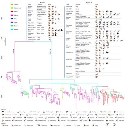 溯源发现,这些病毒分为两种基因类型。第一种类型于2020年1月至6月在欧洲流行,10月至12月在韩国和日本流行,2021年1月由天鹅传入我国。第二种类型于2020年5月在伊拉克的家禽中首次发现,6月至9月在俄罗斯流行,10月传入更多欧洲国家,并由天鹅传入我国,进而传播给我国境内16种野鸟和一些地区的鸭和鹅。