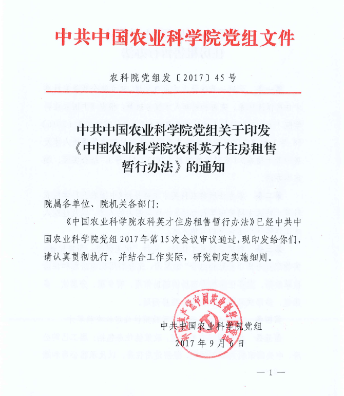中共中国农业科学院党组关于印发《中国农业科学院关于深化体制机制改革 促进人才发展的若干措施》的通知