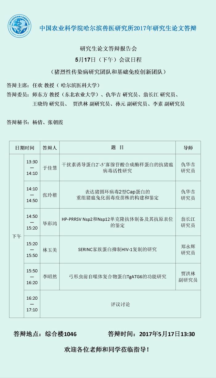 猪烈性传染病和基础免疫团队研究生论文答辩报告会
