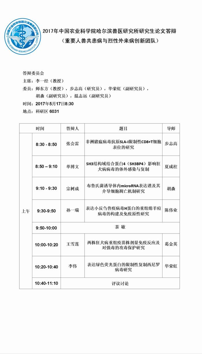 重要人兽共患病与烈性外来病团队研究生答辩报告会