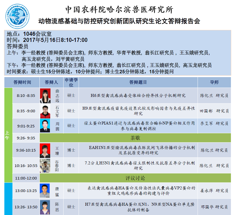 重要人兽共患病与烈性外来病团队研究生答辩报告会