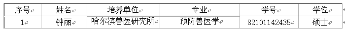 根据《中国农业科学院研究生院“默克生命科学奖学金”评审办法》的有关规定,经过个人申报、导师推荐、研究所初审、学位委员会评定,哈尔滨兽医研究所现推荐博士研究生王竞晗、硕士研究生钟丽为2016年度“默克生命科学奖学金”获奖候选人(具体名单附后)。为了保证此项工作的公开、公平、公正,现将名单进行公示(公示时间截至2016年11月15日)。