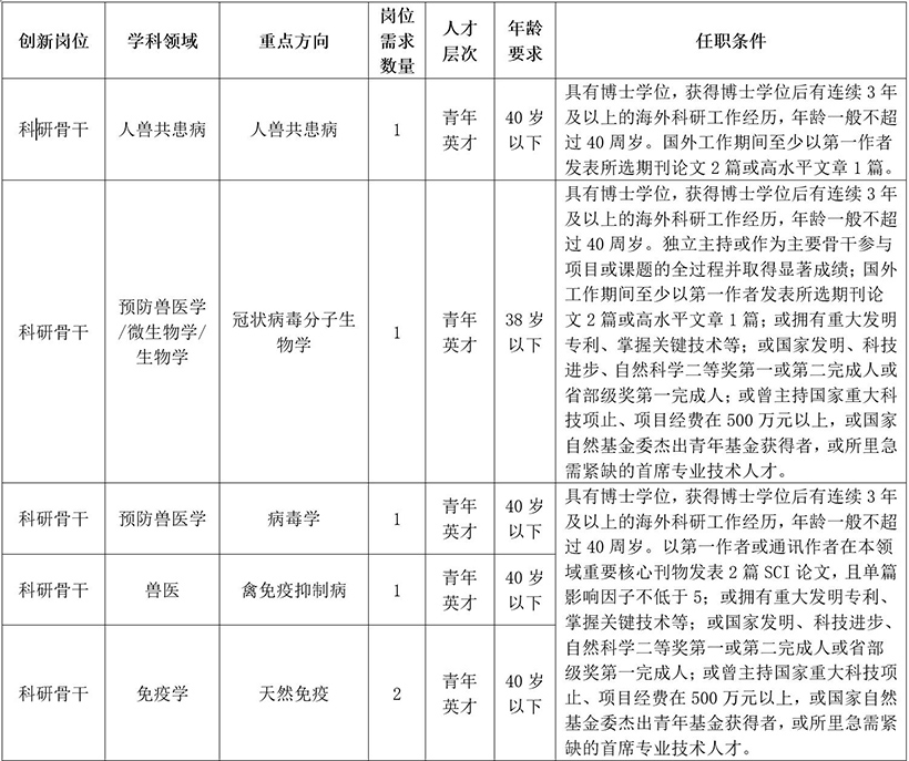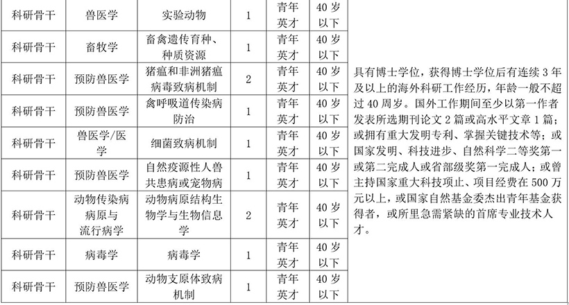 根据《中国农业科学院农科英才特殊支持管理办法》和《中国农业科学院“青年英才计划”管理办法》相关文件要求,经中国农业科学院批准,哈尔滨兽医研究所现面向海内外招聘农科英才,现就有关事项公告如下: