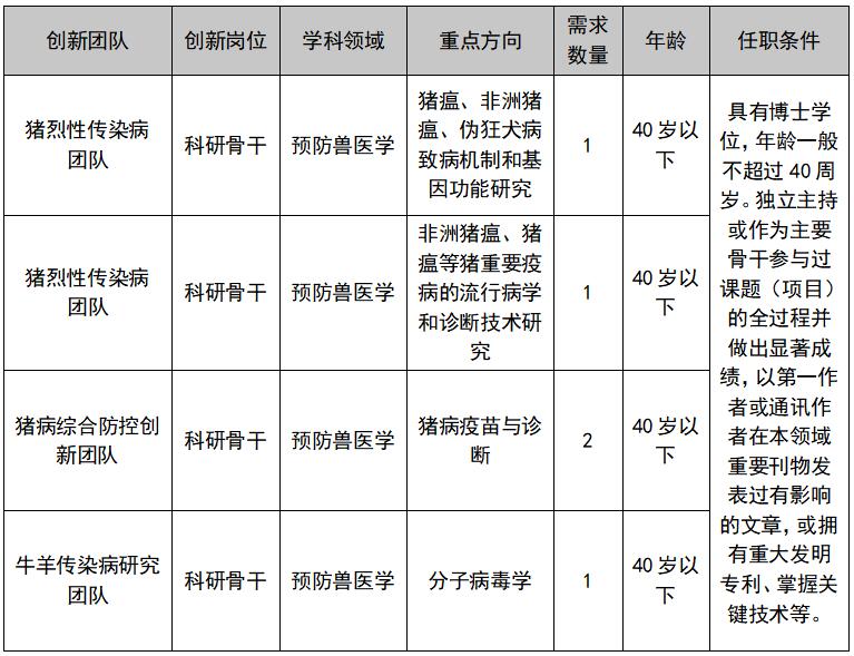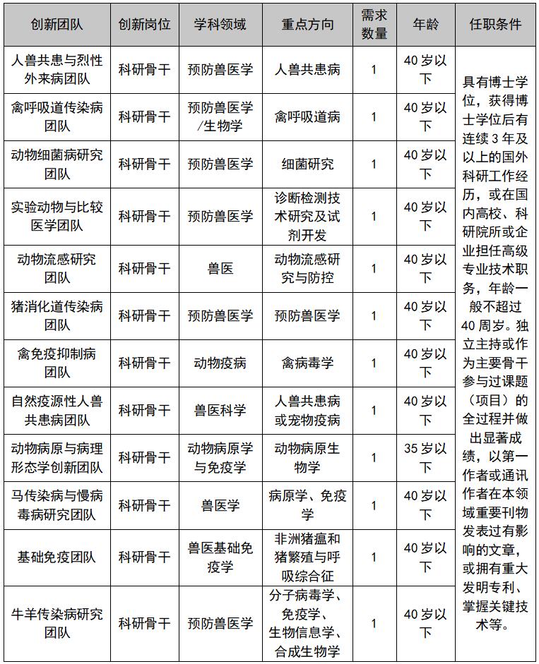 根据《中国农业科学院农科英才特殊支持管理办法》和《中国农业科学院“青年英才计划”管理办法》相关文件要求,经中国农业科学院批准,哈尔滨兽医研究所现招聘农科英才,现就有关事项公告如下: