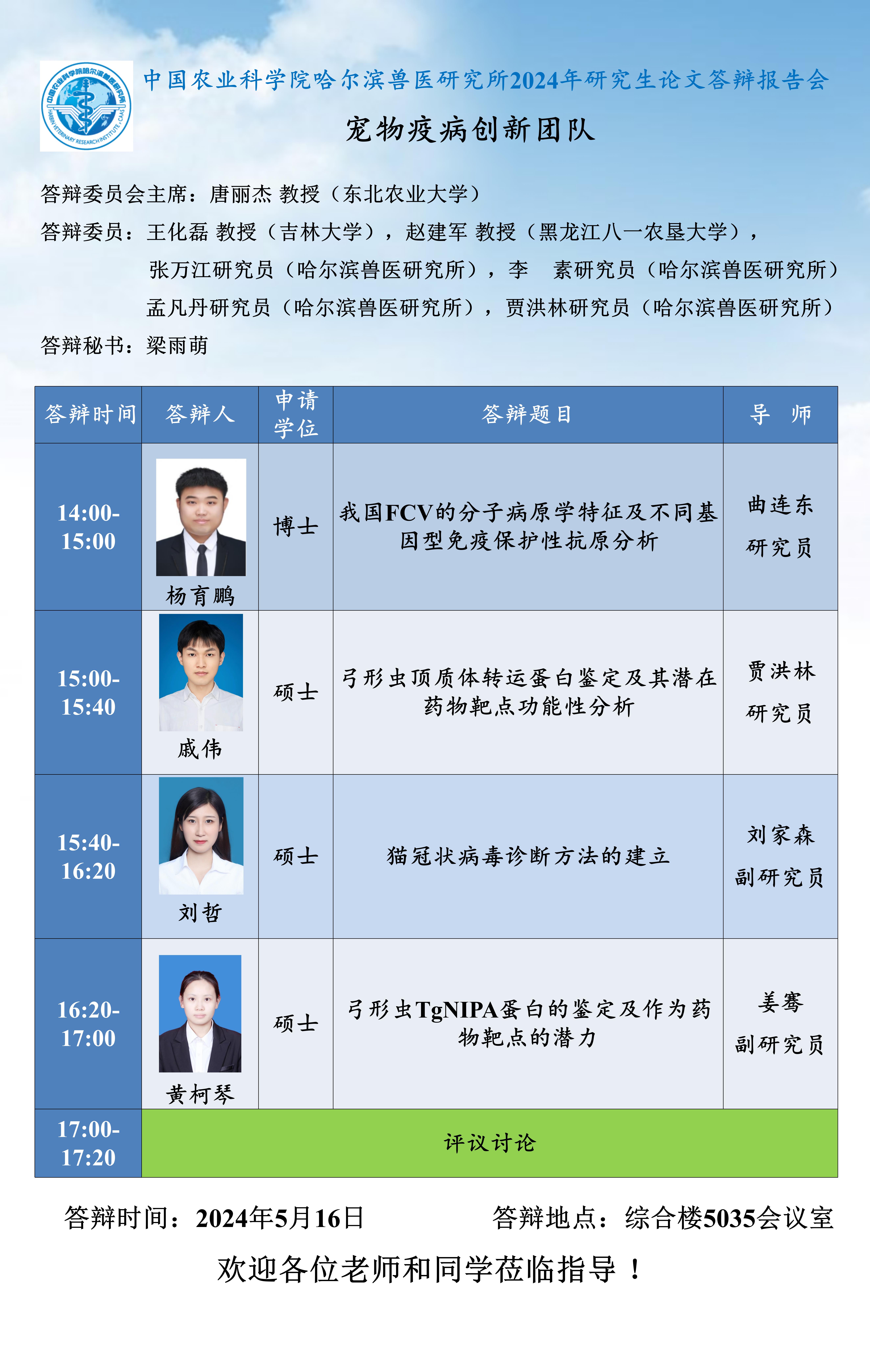 地点:综合楼1046、4035、5035会议室/兽医学院十教