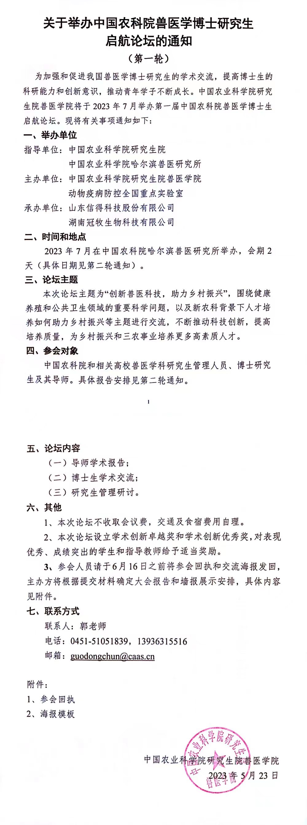 关于举办中国农科院兽医学博士研究生启航论坛的通知 (第一轮)