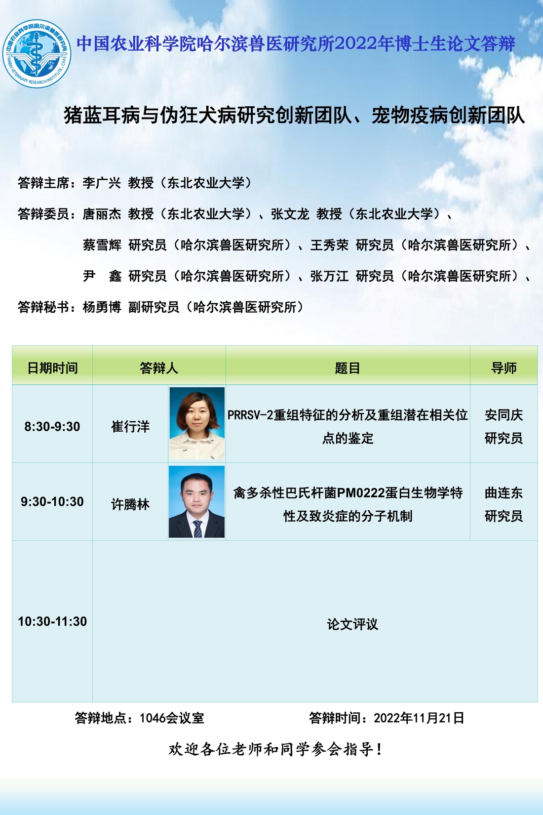 哈尔滨兽医研究所2022级研究生论文答辩海报