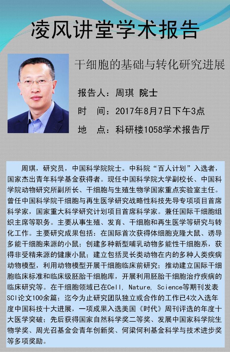 周琪院士 干细胞的基础与转化研究进展
