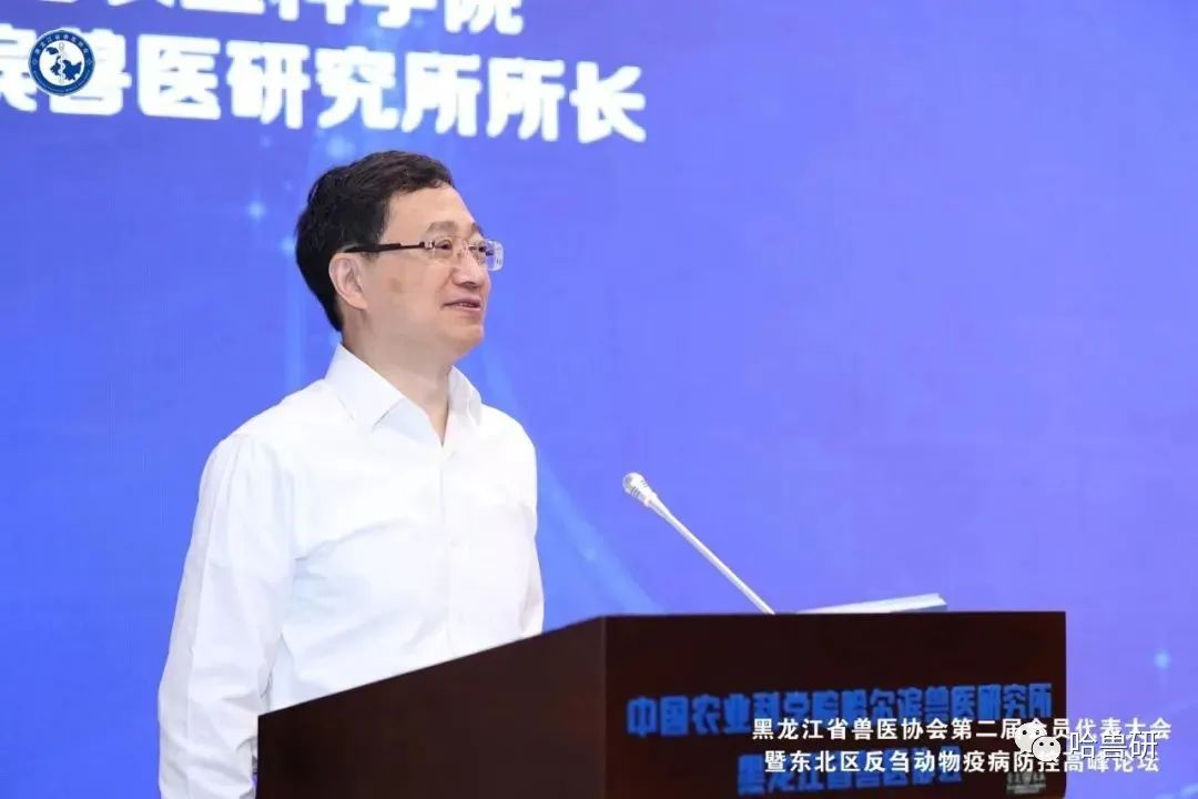 6月12-13日,黑龙江省兽医协会第二届会员代表大会暨东北区反刍动物疫病防控高峰论坛在中国农业科学院哈尔滨兽医研究所顺利召开。中国兽医协会副会长兼秘书长辛盛鹏,黑龙江省农业农村厅一级巡视员孙文志、总畜牧兽医师张雨,黑龙江省直属机关工作委员会三级调研员张军、黑龙江省民政厅丛力英,中国农业科学院哈尔滨兽医研究所所长步志高出席会议。