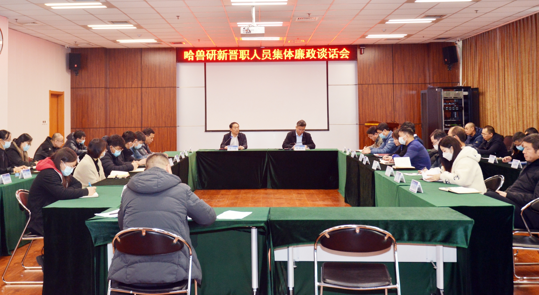 12月22日上午,中国农业科学院哈尔滨兽医研究所召开新任职正处级、新晋首席、研究生导师、高级职称和企业高管人员廉政集体谈话会。纪委书记周亮对新晋职人员进行集体廉政谈话。党委委员、纪委副书记张晓鹏主持谈话会。
