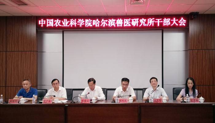 陈萌山在讲话中指出,这次哈尔滨兽医研究所领导班子换届调整,是部、院党组根据换届考察情况,从哈尔滨兽医研究所事业发展大局和领导班子建设实际出发,经过通盘考虑、认真研究,并与中共黑龙江省委协商一致后作出的决定。陈萌山感谢省委、省政府及有关部门多年来对研究所的关心、呵护、支持与厚爱,并表示中国农科院和哈尔滨兽医研究所将一如既往全力支持黑龙江省的农业发展。