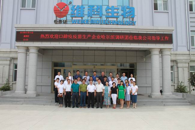 2016年7月31日,由金宇宝灵生物药品有限公司等国内6家生物制品企业组成的口蹄疫疫苗生产企业哈尔滨调研团一行24人到维科公司进行考察交流。