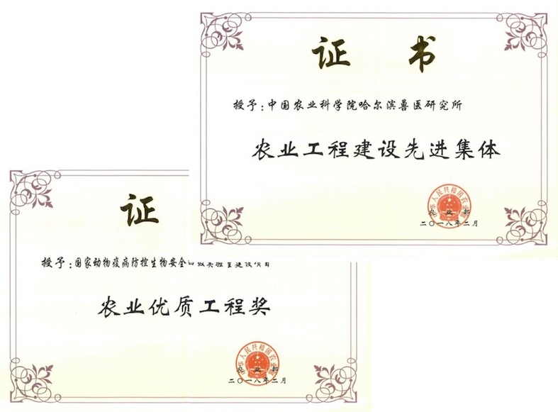 2018年2月26日,农业部在中央农业广播电视学校召开了农业部直属单位基建管理培训班。农业部党组副书记、副部长余欣荣同志到会并讲话,农业部各司局主要领导、农业部直属单位主管基建领导或基建负责人参加会议。会议由农业部总经济师、发展计划司司长张合成同志主持。 会上,表彰了近十年来农业部优质工程、工程建设先进集体和工程管理先进个人,播放了我所新所区及重大项目建设管理的录像,中国水产科学研究院、中国热带农业科学院、中国动物卫生与流行病学中心等单位进行了经验交流发言。 我所“国家动物疫病防控高级别生物安全实验室”建设项目获“农业优质工程奖”,我所荣获“农业工程建设先进集体”荣誉称号,赵国辉副所长荣获农业部“农业工程管理先进个人”荣誉称号。我所囊括了农业部基本建设工作3项奖励,这不仅是农业部领导对我所多年来新所区建设成绩的充分肯定,也是对我所基建工作的鞭策。