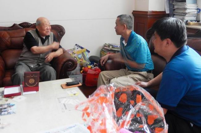 8月27日上午,顶着毛毛细雨,党委书记张逐陈、副书记夏长友前往离休干部、抗联老战士、原我所党委书记王泽林同志的家中,代表所党政领导班子和全所职工亲切看望了王泽林同志,给他佩戴了党中央、国务院和中央军委颁发的“纪念中国人民抗日战争胜利70周年纪念章”,并送去了慰问金,向他致以崇高的敬意。王泽林同志对此表示感谢,他希望我们国家越来越兴旺发达,研究所的事业蒸蒸日上。(李相斌)