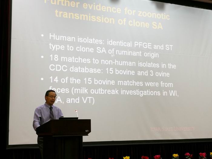 7月18日,哈尔滨兽医研究所第七期凌风讲堂开讲,应我所所长、重要人兽共患与烈性外来病团队首席科学家步志高研究员的邀请,美国微生物科学院院士、美国爱荷华州立大学兽医学院副院长张启敬(Qijing Zhang)教授作了题为“Emergence of hypervirulent Campylobacter jejuni: a One Health Challenge”的报告。报告会由步志高研究员主持,所内相关老师及学生参加了本次活动。
