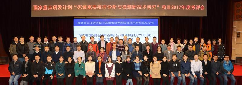 近日,十三五国家重点研发计划项目“家禽重要疫病诊断与检测新技术研究”2017年度考评会在北京金泰海博大酒店顺利召开,本次会议由中国农业科学院哈尔滨兽医研究所主办,北京农林科学院畜牧兽医研究所、中国农业大学承办。科技部农村中心葛毅强处长、项目专员孙康泰博士、魏战勇博士,项目咨询专家组王笑梅研究员、李慧姣研究员、蒋桃珍研究员、刘胜旺研究员、高玉龙研究员,课题骨干及科研助理等130余名科研人员参加了考评会。开幕式由项目首席王云峰研究员主持。