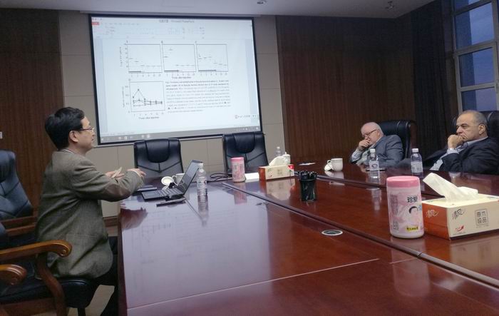 访问期间,两位摩洛哥专家与我所有关研究人员进行了座谈。两位专家首先介绍了我所研制的小反刍兽疫重组山羊痘病毒活载体疫苗在M.C.I. Sante Animal公司进行小反刍兽疫强毒动物攻毒保护试验的情况,结果显示该疫苗安全有效,令人满意。随后,步志高研究员介绍了M.C.I. Sante Animal公司委托我所构建的小反刍兽疫重组绵羊痘病毒(摩洛哥疫苗株)活载体疫苗的研发进展,以及在羊痘病毒载体研究方面的新突破,两位专家对我们所取得的良好结果表示感谢,表达了继续深入合作的意愿。此外,步志高研究员还介绍了在我所在布氏杆菌疫苗、中东呼吸综合征(MERS)病毒疫苗等方面的研究进展。最后,双方就小反刍兽疫、牛疙瘩皮肤病、MERS病毒、布氏杆菌病等方面的合作达成了新意向,并对未来进一步合作充满了新期待!(文/图 陈伟业)