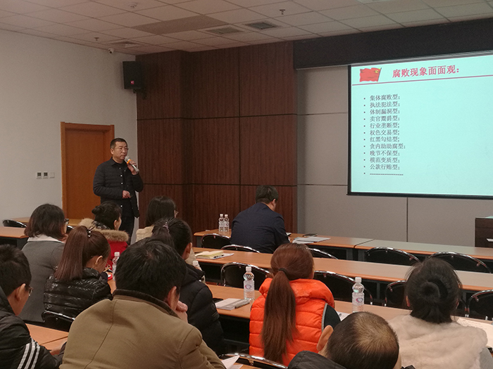 培训会上,张晓鹏做了题为《腐败的成因及防范措施》的报告,他用大量的事实和案例,剖析了当前反腐斗争的总体形势和政府采购、科研经费使用、基建、招投标等领域腐败易发、多发的环节,并总结归纳了“手、眼、身、法、步”廉洁从政5字语,提醒大家注意提高自身修养,敬畏法度、敬畏规矩,远离小圈子、远离低级趣味,提高拒腐防变的能力。