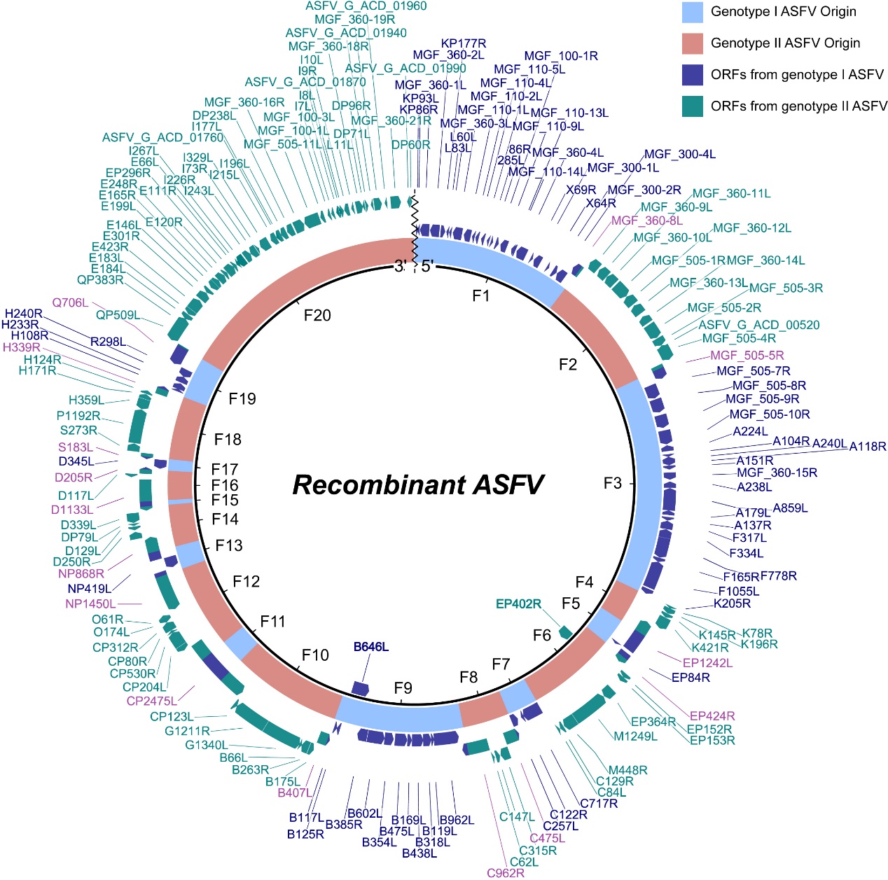 非洲猪瘟基因I型和II型重组病毒基因组分析