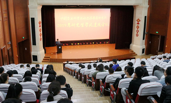 4月19日下午,在综合楼1046会议室召开研究生导师师德师风建设工作会议。所领导、纪委委员及62名研究生导师参加会议,学习教育部和农科院的最新要求,研讨研究所师德师风建设方案。