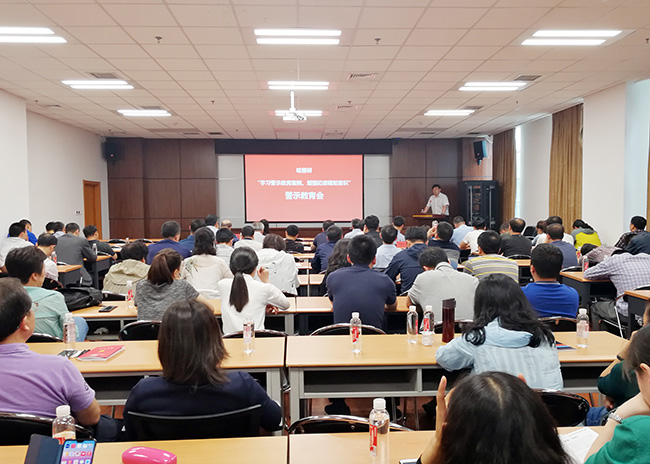 为教育干部职工进一步增强纪律规矩意识,知敬畏、存戒惧、守底线,6月13日,所党委、所纪委开展了“学习警示教育案例、增强纪律规矩意识”警示教育活动。党委副书记、纪委书记夏长友主持会议并讲话,党委委员、纪委副书记张晓鹏宣讲了院监察局印发的五大类13个典型案例。所党政班子成员、纪委委员、副研究员、副处以上干部,党支部书记、支部纪检委员130余人出席会议。