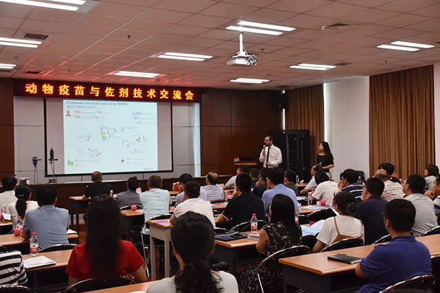 为了增强自主创新能力,扩大科技开放合作,加快动物疫苗成果转化或转型换代升级,7月18日上午,成果转化处邀请法国SEPPIC上海特殊化学品有限公司来我所就动物疫苗与佐剂技术方面作了交流互动,部分科研人员及下辖公司相关技术人员共70余人参加了会议。