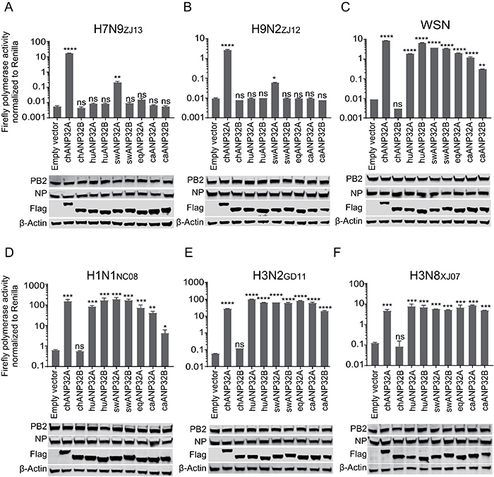 图1 不同物种ANP32蛋白对不同物种A型流感病毒的支持活性分析