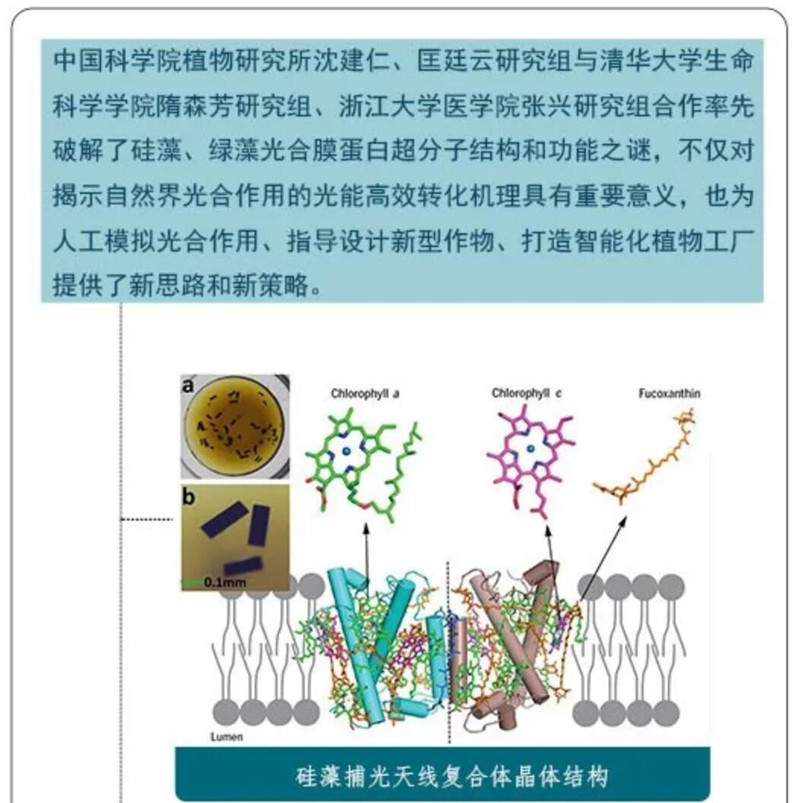 进展四 破解藻类水下光合作用的蛋白结构和功能