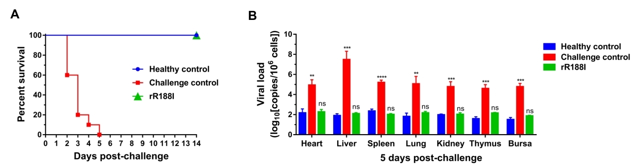 图2. rR188I重组毒为SPF鸡提供完全免疫保护